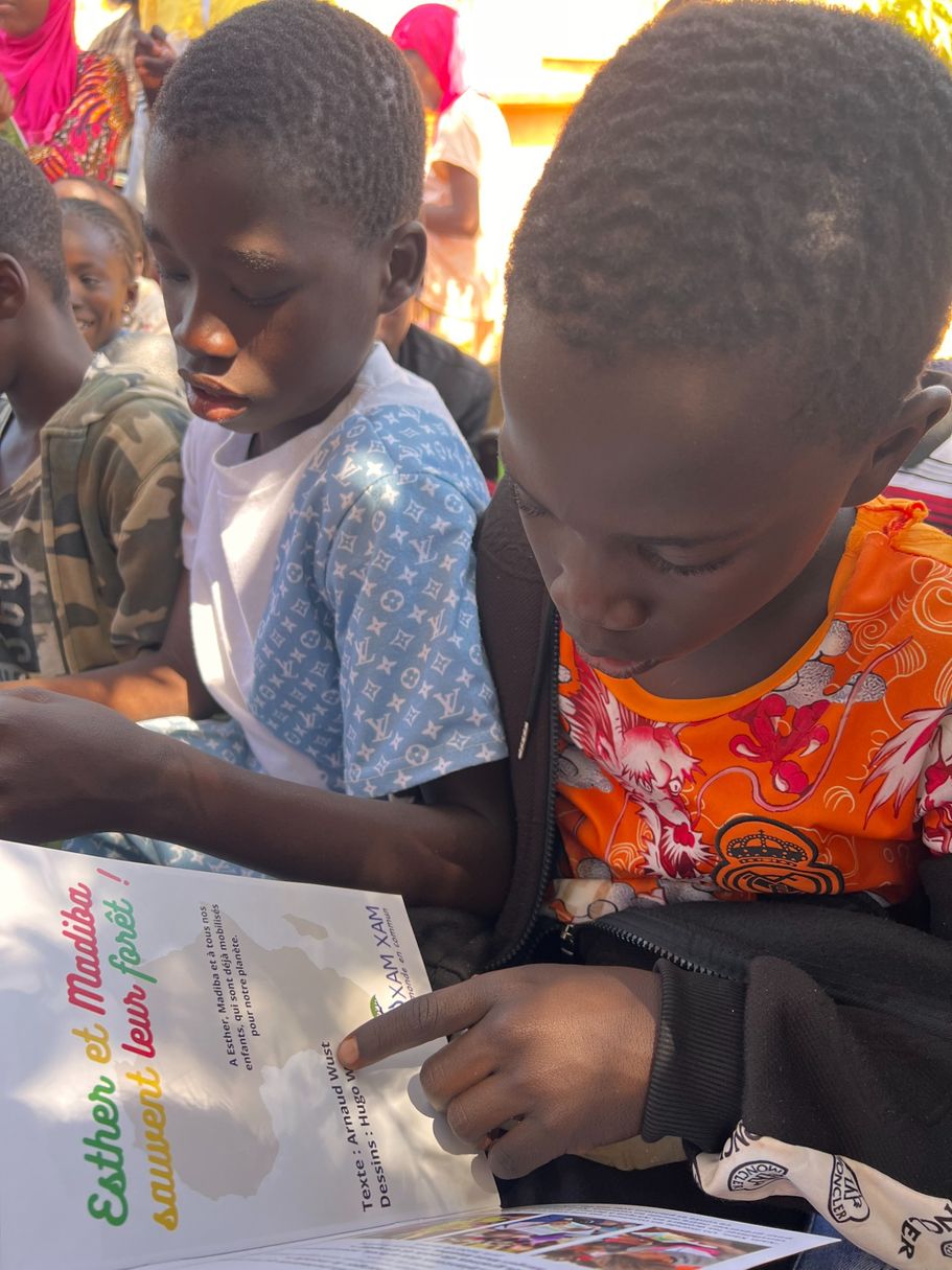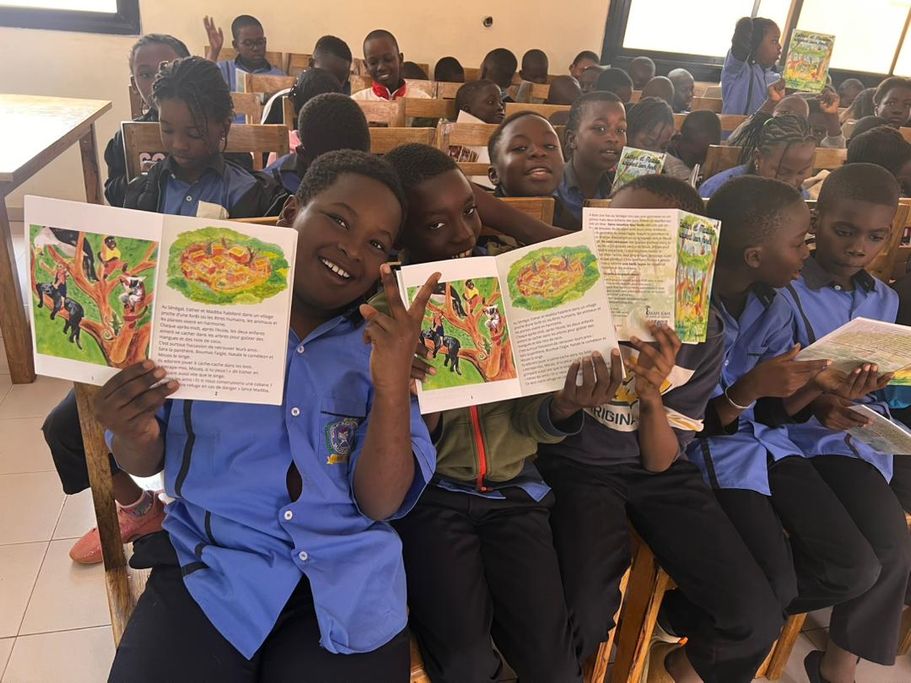 Au total, ce sont près de 1300 exemplaires de notre conte "Esther et Madiba sauvent leur forêt" donnés aux écoliers et à leurs enseignants. Et 65 arbres plantés avec eux dans leur école. Des espèces ombragères essentiellement.